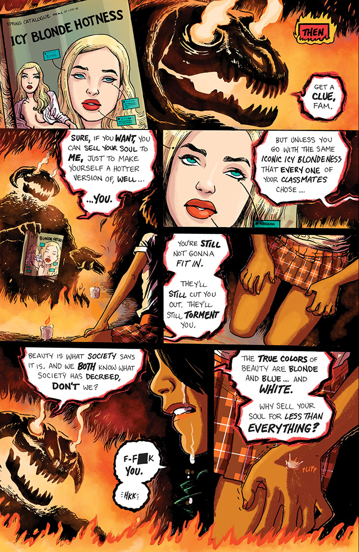 We continue serialization of the collected edition of the six-issue 2018 miniseries Empowered and Sistah Spooky’s High School Hell, written and laid out by me and featuring art and lettering by Guest Artist Carla “Speed” McNeil and coloring by Jenn Manley Lee.
