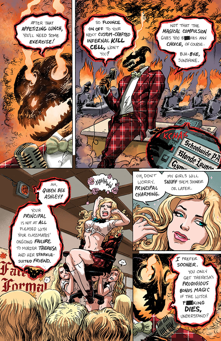 We continue serialization of the collected edition of the six-issue 2018 miniseries Empowered and Sistah Spooky’s High School Hell, written and laid out by me and featuring art and lettering by Guest Artist Carla “Speed” McNeil and coloring by Jenn Manley Lee.