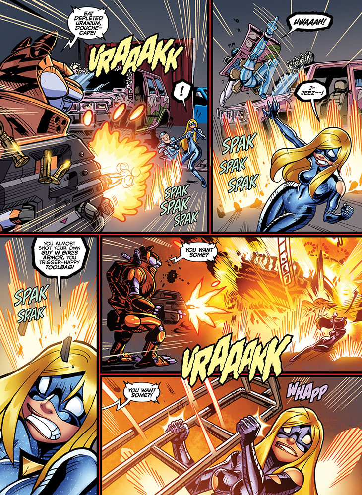 Here's my initial page-rough "thumbnail" for this page from 2013's one-shot Empowered: Animal Style, with final artwork and fine mecha designs by Guest Artist John Staton, sweet colors by Guru EFX, and ace lettering by Blambot's Nate Piekos: