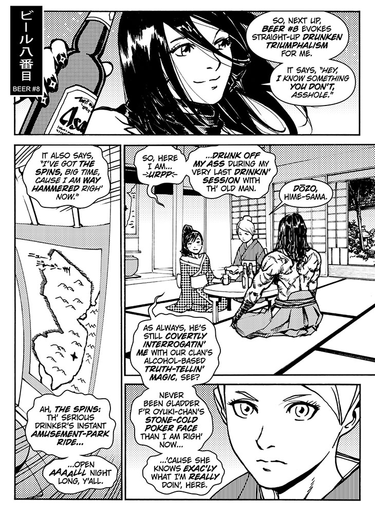 Panel 1: Y'know, I can't recall the last time I drank an Asahi beer, as seen here; must've been before COVID, as I haven't been to a serious Japanese restaurant since my last season of congoing in 2019.