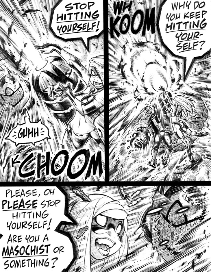 If any commenting nitpickers have quibbles about the mechanics of this story's beatdown, rest assured that Emp will shortly (if briefly and sketchily) explain her reasoning.