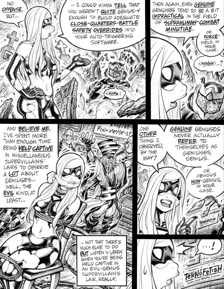 Panel 5: As we'll see next week, the mysterious "Teknofetish" organization becomes a bit of a running plot thread through many of the Empowered one-shots, whether Guest-Artist-drawn or not.