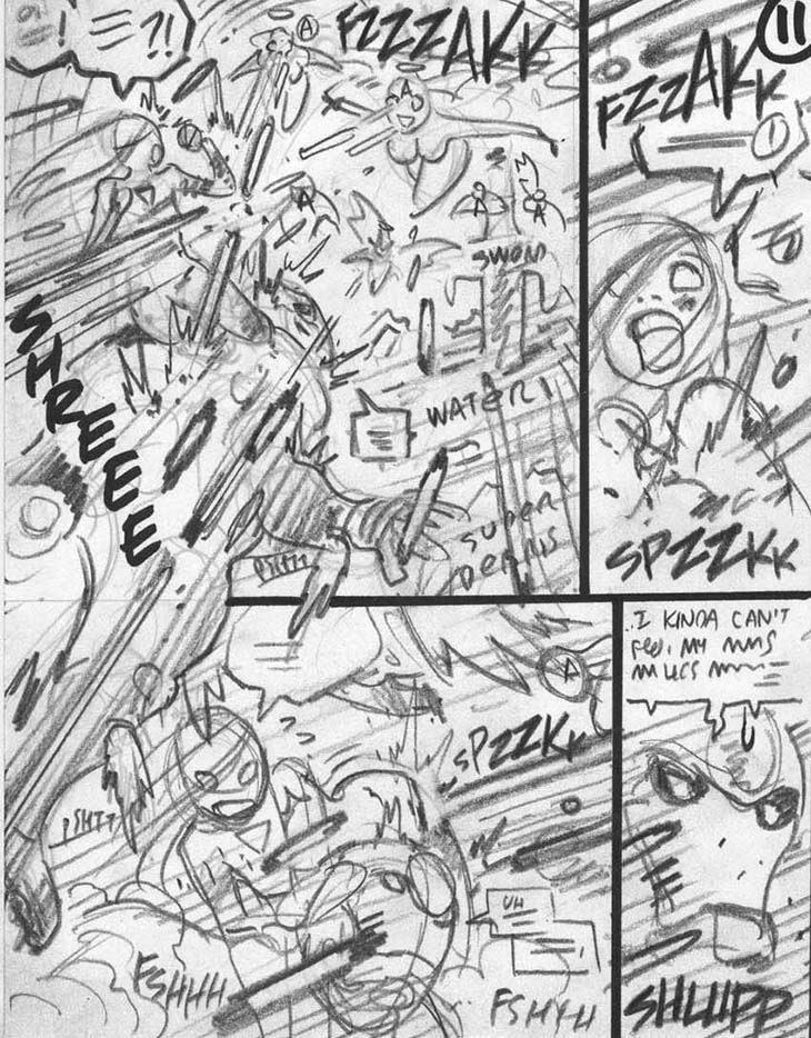 Here's my wee, "thumbnail" rough for this page, translated into glorious full color by Guest Artist Ryan Kinnaird: