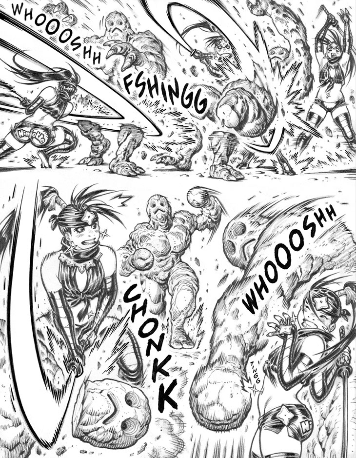 I do still quite enjoy that final Ninjette pose, but I do wish I'd depicted more "stepping backwards" movement on her part to dodge that downward strike.