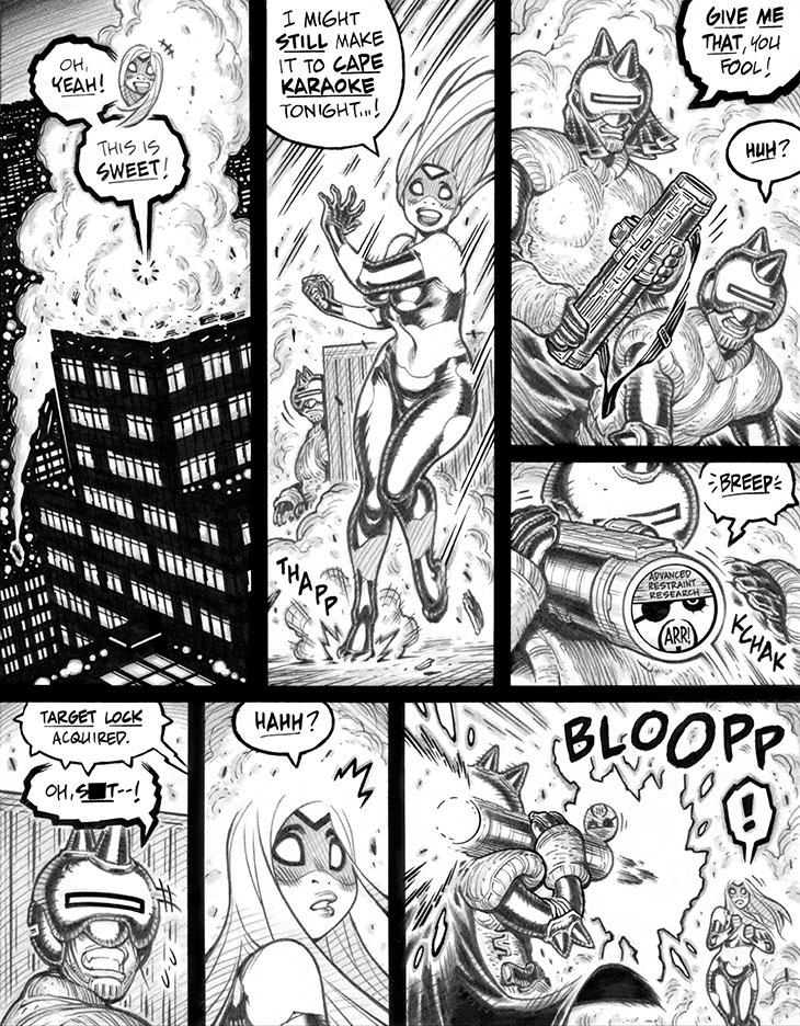 Panel 5: Belatedly occurs to me that the ARR! device should've been "speaking" from off-panel with a, well, "piratical" accent. Oh, well; quite the missed opportunity, really.