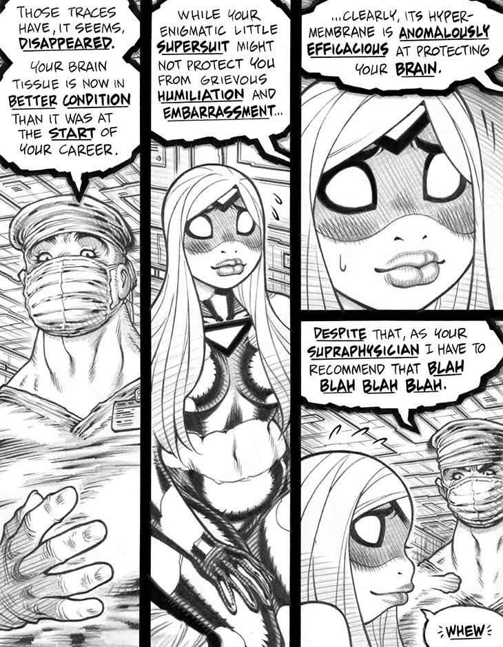 Today's commentary continues a series of excerpts from I Am Empowered, the short-lived but useful Year-One-ish prose experiment I worked on about a decade ago to flesh out and explore the earliest months of Emp's superheroic career, along with concepts and details not necessarily addressed in the Empowered proper. Note that the project was originally composed in old-style Twitter 140-character segments, as the narrative was theoretically Emp's (unpublished) social media account of her Year One adventures; for some reason, I have no interest in writing prose fiction, but don't mind doing so in tweet format. Note also that the entirety of this incomplete project is serialized under the I Am Empowered hashtag on my Patreon.