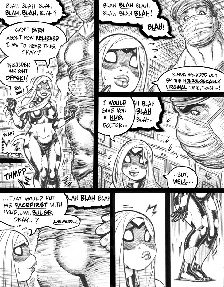 And that's as far as this I Am Empowered story fragment got, alas. As with many of the eventually abandoned project's chapters, I lost the thread of this narrative, or lost interest in exploring it, or lost the spare time to work on the dang thing. Anyhoo, hope you enjoyed this excerpt, webcomic readers! If you're interested, I could certainly post more excerpts from I Am Empowered here down the road.