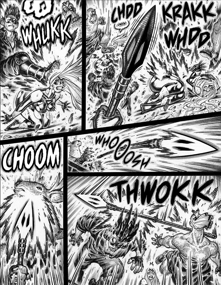 Panel 1: Using WHUKK instead of my beloved, oft-repeated WHOKK was done solely for a change of pace, but I rather like the subtle difference that the U in WHUKK provides.