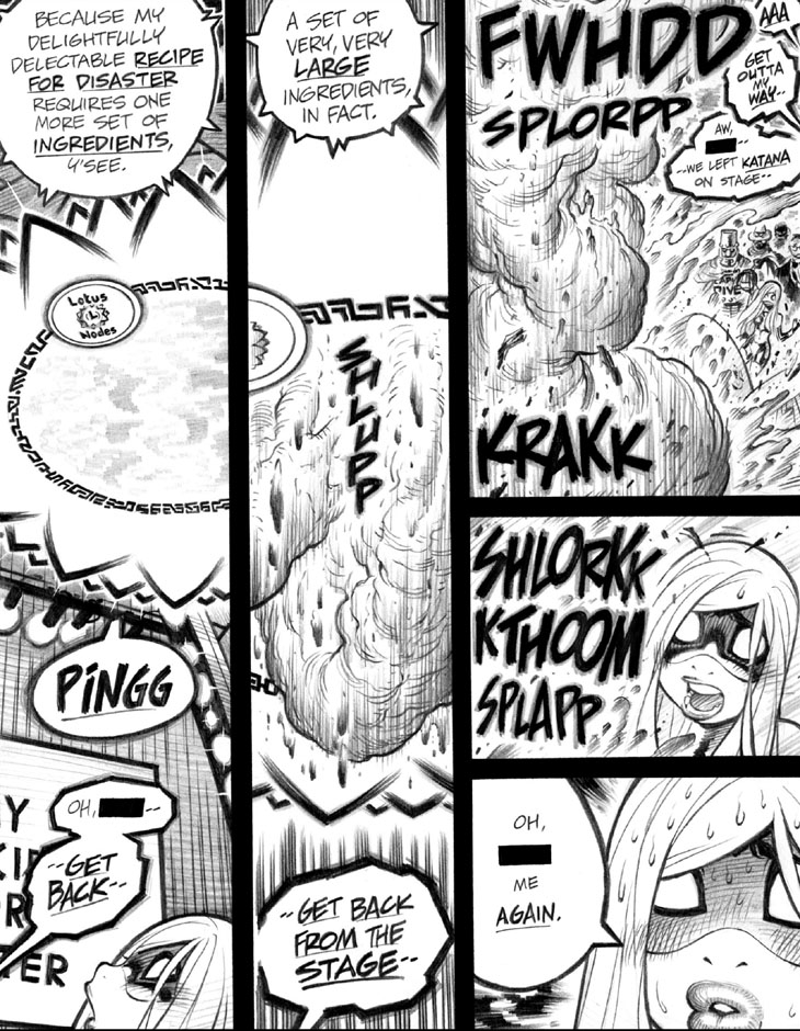 Panel 1: Yeahp, Lotus Node portals can manifest at any sort of angle, not just the vertical orientation we’ve seen earlier. For the most part, though, my assumption is that they’re too slow to set up and program—not mention immensely power-consuming to open—for the fun shenanigans of the videogame Portal or Void from The Incredibles 2 to be possible with Lotus Nodes. (Though I should note that the upcoming Empowered vol.11 does feature one brief scene involving a form of Portal Fu.)