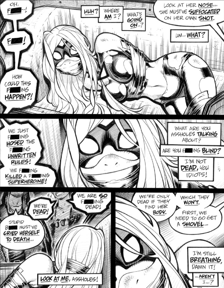 I’m not gonna say much about this rather odd and anomalous scene, other than to say it miiiiight be a callback of sorts to the anecdote Emp related in the previous chapter, “My Advice for Struggling Superheroines.”