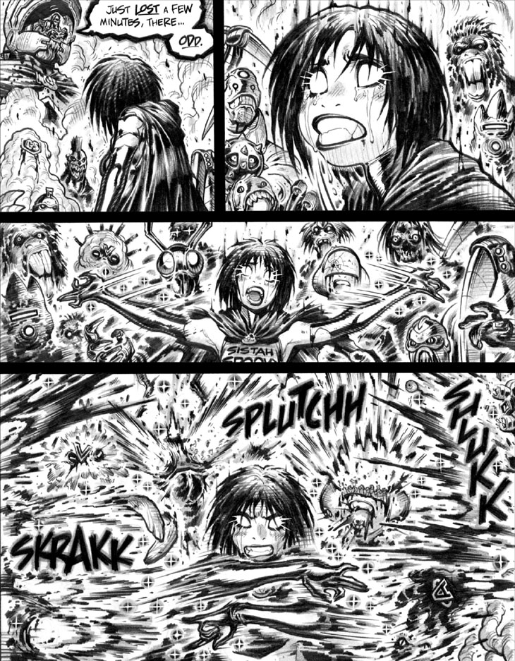 Panel 2: Helpful hint for those who seriously piss off Spooky, for any reason: As we’ve seen before, you do not want to see her eyes glowing blankly like this.