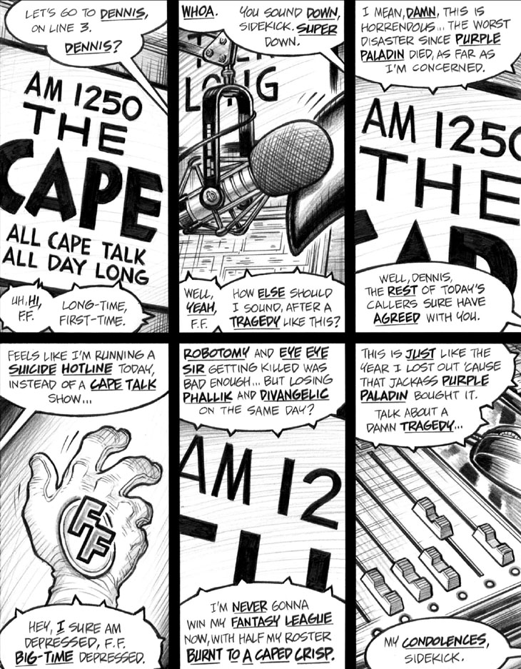 Panels 5-6: Once again, the webcomic serialization—and the weekend-long gap between pages—hampers a joke. Rest assured that, on Monday, the concept of superhero fantasy leagues will be addressed and clarified in, I hope, a reasonably amusing manner.