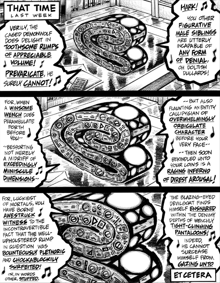 And yes, in case you somehow couldn’t figure it out, this page is the World-Wrecking Wordsmith’s vocabularily florid version of Sir Mix-A-Lot’s immortal “Baby Got Back.”