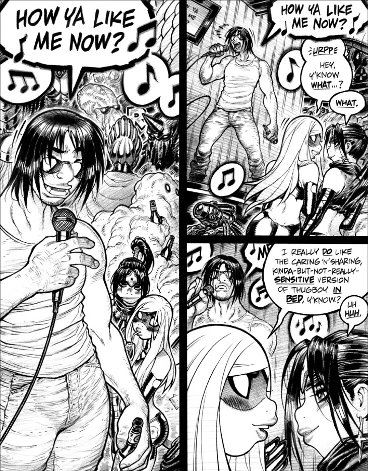 Next week on this webcomic, we explore a rather tricky and dare I say potentially problematic thematic riff re: Emp’s attitude in the bedroom. (I based said riff on discussions with a few female friends of mine, not that this would be any defense against the possible sputtering of the ostentatiously offended.)