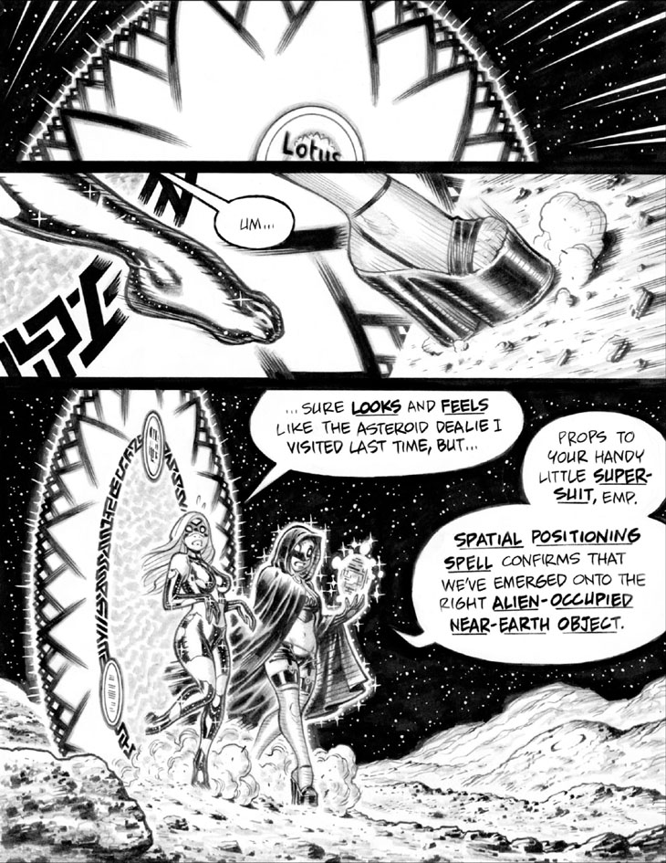 Panel 2: Better sound the Excessively Petite Feet alert, folks, as my old and randomly whimsical artistic flourish of drawing notably truncated feet recurs once more.