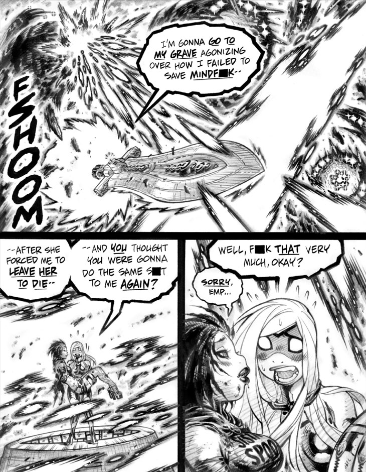 Yeahpo, Spooky forcing Emp to escape was indeed a pretty strong echo of how the late Mindf**k did the same back at the end of Empowered vol. 5. (I'd include a link, but I'm not feeling ambitious enough this Sunday morning at 5:50am to look up said link—though, in fact, typing this sentence probably took longer than doing so. Whoops!)