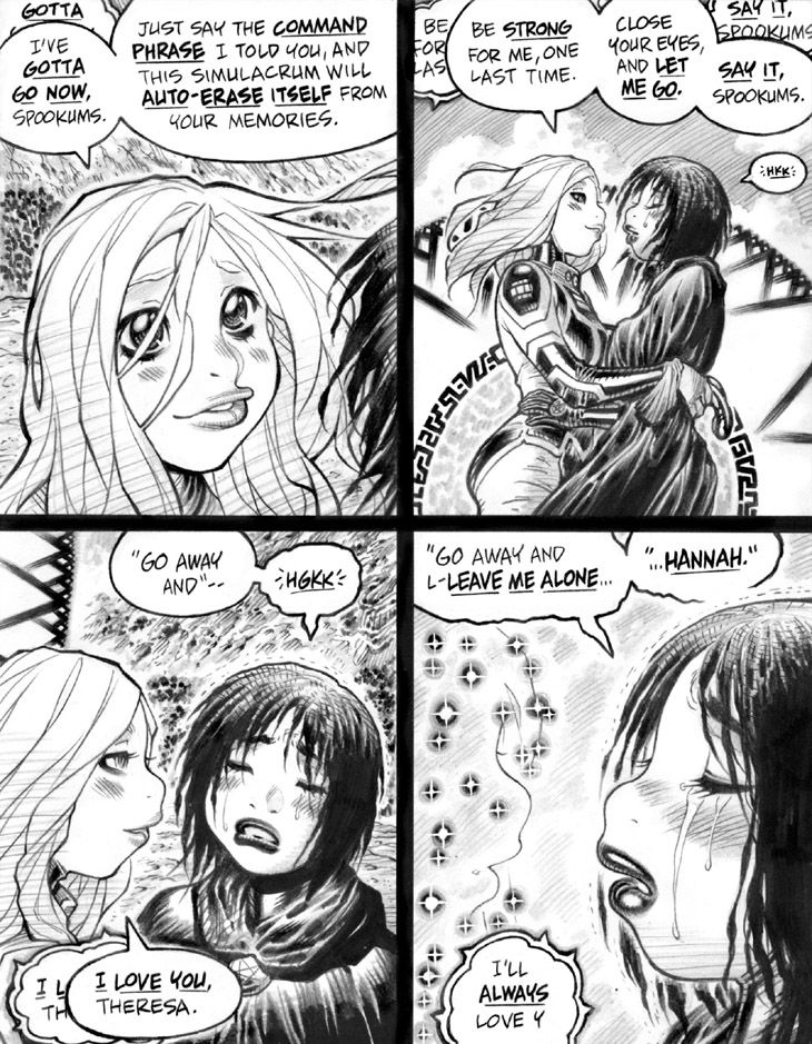 Panel 4: You know the heavy stuff is going down when I deign to reveal a character's real name, folks. (Though, er, you'd have to ignore the fact that Spooky probably would've called her "Hannah" a bunch of times; then again, you could rationalize this by saying that Spooky has some undefined issue about speaking her lover's real name. No-Prizery ahoy!)