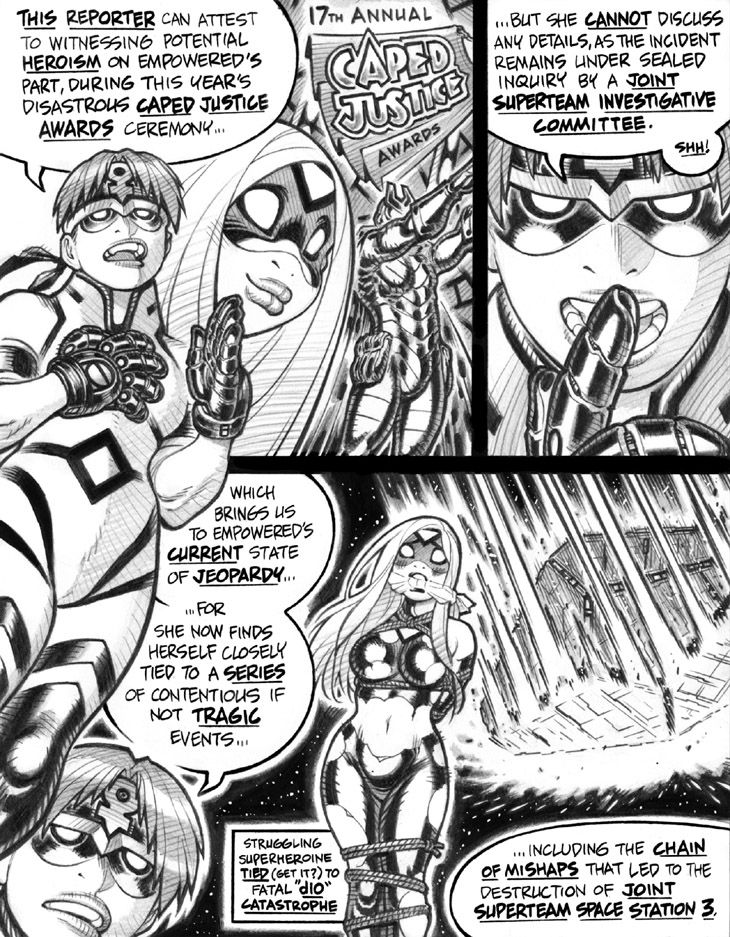 Panel 3: I had once considered exploring whatever the heck happened to Joint Superteam Spaces Stations 1 and 2 in the comic proper, but never got around to addressing the matter. I vaguely recall that the defunct prose experiment I Am Empowered mentions 'em in passing at one point; I'll have to go take a look sometime, as I'm currently posting the last few incomplete fragments of that project on my Patreon over the next month or two.