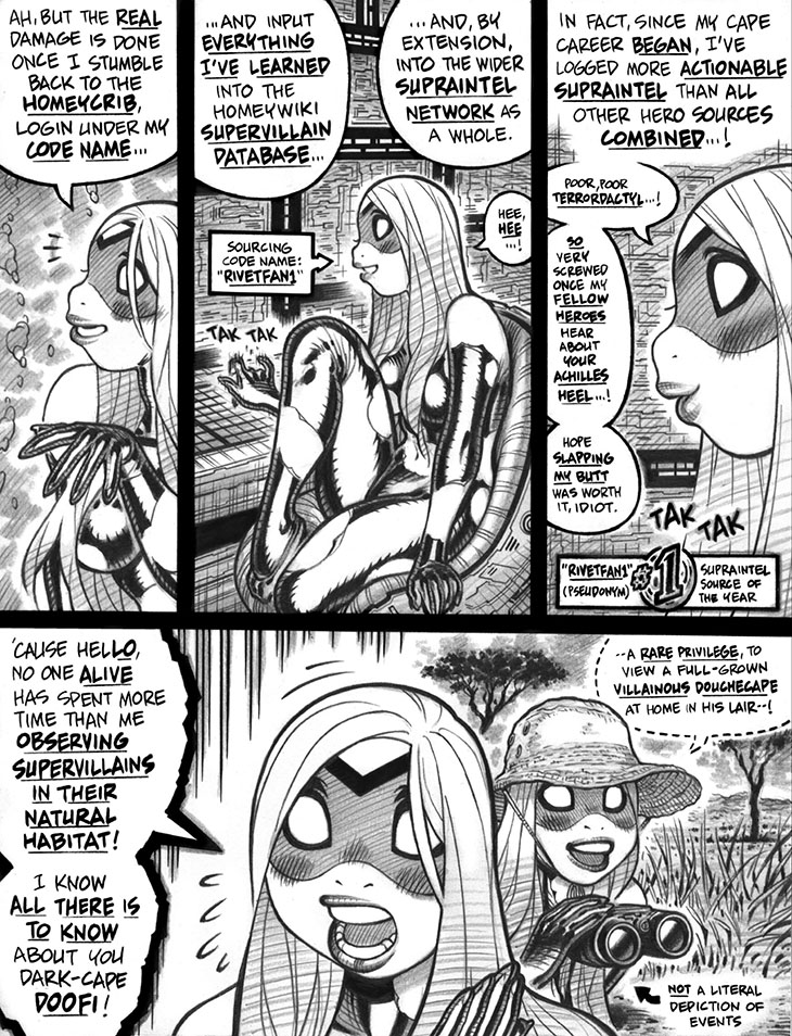 Panel 3: This, of course, is how the SuperHomeys wound up with such an impressive supraintel rating, despite Major Havoc knowing nothing about said status when he was complimented on it exactly 150 pages ago. Golly!