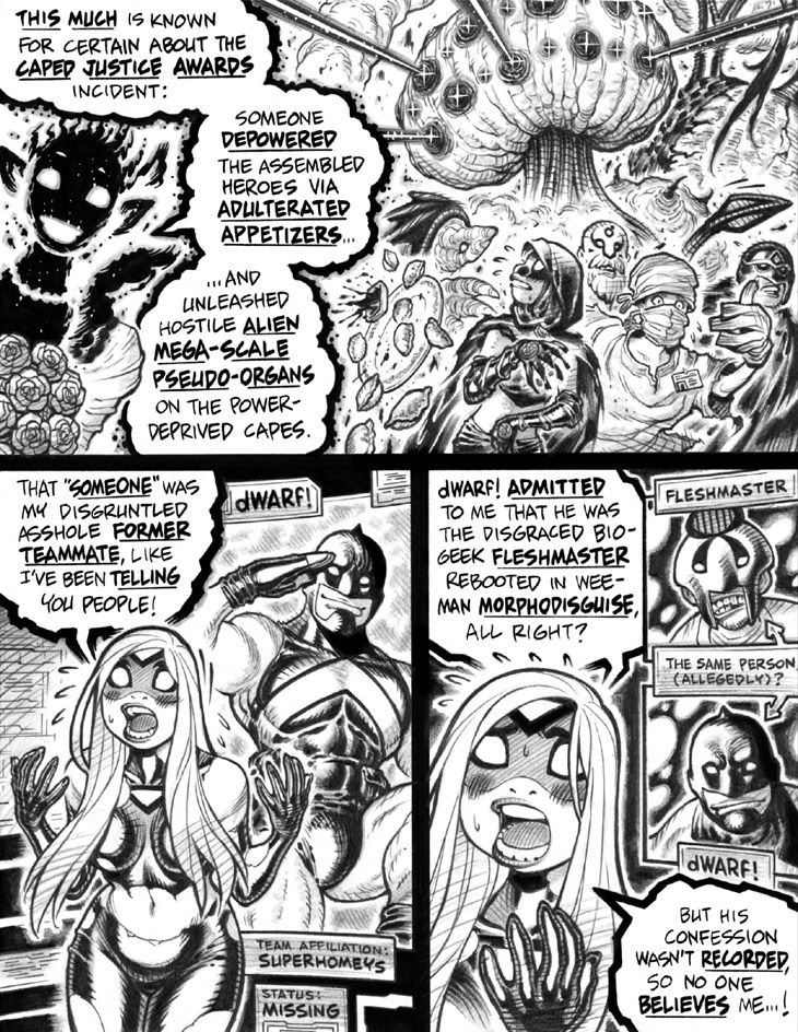 Panel 3: The phrase "wee-man morphodisguise" also amuses me to no end, gotta admit.
